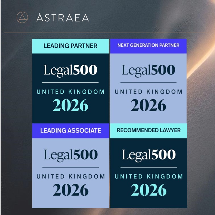 Astraea is ranked Tier 4 for Commercial Litigation (Mid-Market) and Tier 3 for Professional Discipline, in Legal 500's rankings for 2026.
